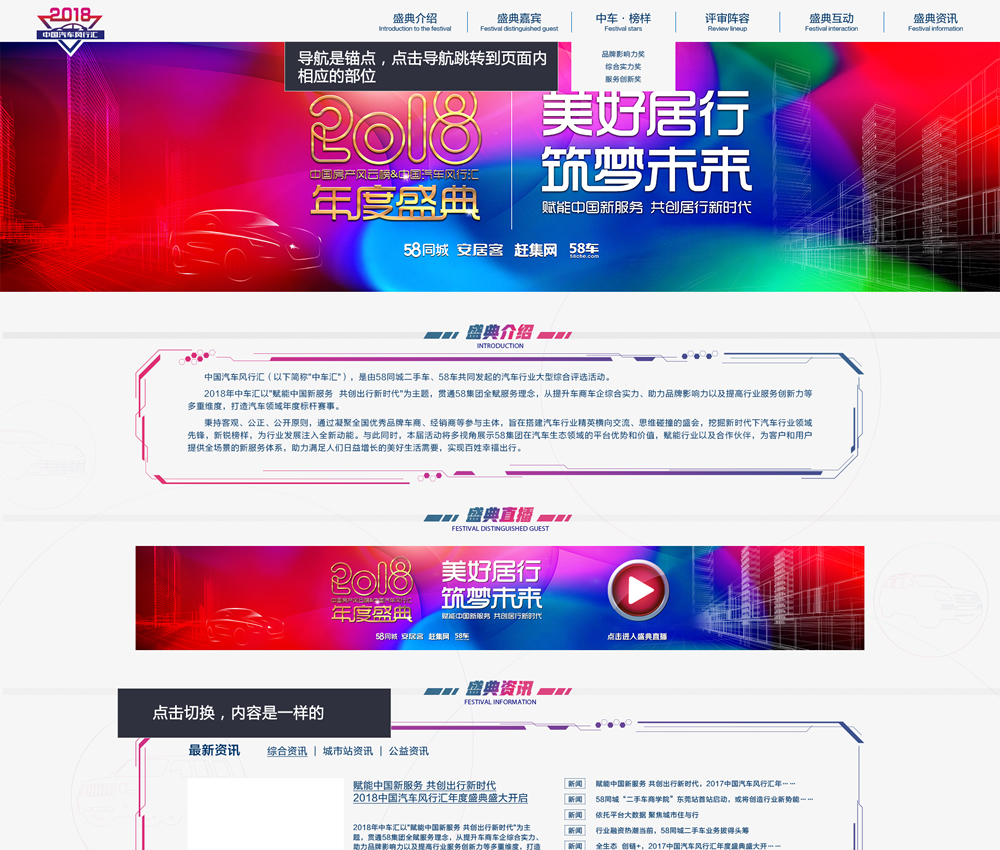 历时2017-2020 50同城中车中房榜 年度盛典。2018年58同城年度盛典整站开发。