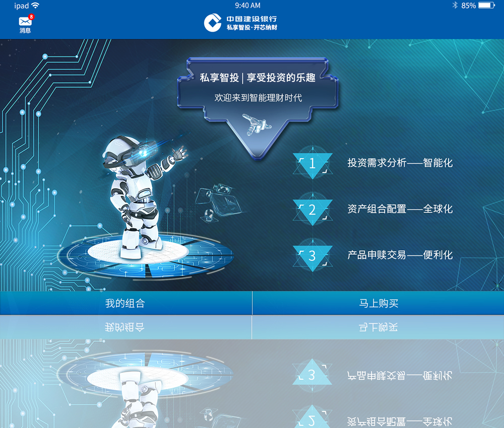 中国建设银行私享智投系统开发,配合中国建设银行开发的智能理财系统的前端和整套系统。