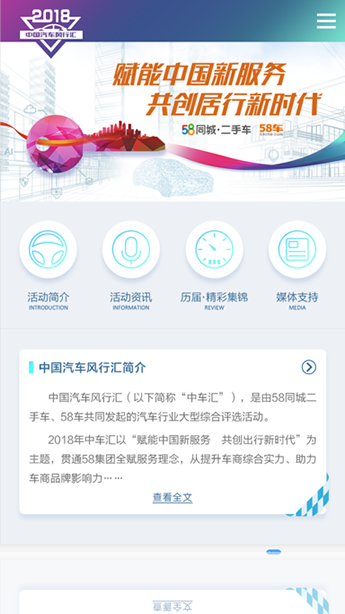 历时2017-2020 50同城中车中房榜 年度盛典。2018年58同城年度盛典整站开发。
